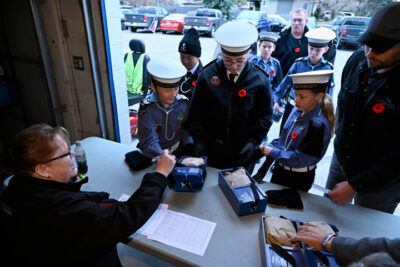 Navy League Cadets receive their boxes of poppies and the location of their posts from Royal Canadian Legion Branch No. 4 former president Lynda Bly Saturday, during the kickoff of the 2025 Poppy Campaign.Joe Manio