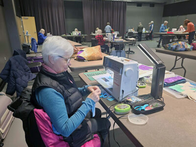 Lethbridge Centennial Quilters Guild member Teresa Petriw works on a quilt at a recent meeting at Casa.By Joe Manio