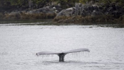 Humpback whale Astroboy is untangled from 140 metres of rope off Vancouver Island