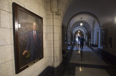 Harper’s portrait was presented in a ceremony at the Sir John A. Macdonald Building in downtown Ottawa.