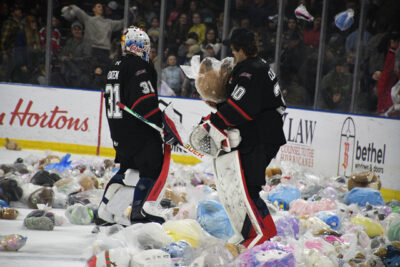 Kaden Longley broke in on a partial breakaway and scored a shorthanded goal 15:38 into the first period to allow fans to unleash the stuffed bears on to the ice.