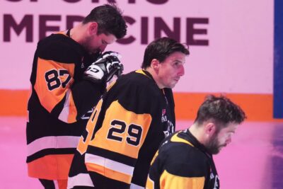 In the final two minutes, with the game in hand, the crowd showered Fleury with chants of “Thank You Fleury.” When the final horn sounded, fellow franchise cornerstones Sidney Crosby, Evgeni Malkin and Kris Letang embraced Fleury one more time in the crease.
