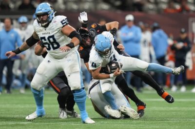 At Toronto, there’s nowhere to go but up for Hamilton (9-6) following last week’s 40-3 loss in Winnipeg, which began with Trey Vaval taking the opening kickoff 98 yards for the touchdown. Still, the Ticats have clinched a home playoff game, are 5-1 within the East Division and can strengthen their hold on top spot with a win. Nick Arbuckle returned as the starter for Toronto (5-10) in last week’s loss to B.C., passing for 281 yards with a TD and interception. But he’s been listed as limited in practice this week with his calf ailment. The Argos have lost two straight after reeling off three consecutive victories.