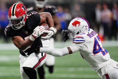 The combination of running back Bijan Robinson and wide receiver Drake London had the Bills on their heels the majority of the game. Robinson tied a career high with 170 yards on 19 carries and had another 68 receiving yards for a career-best 238 yards from scrimmage. The highlight was Robinson’s 81-yard touchdown run, the NFL’s longest of the season and the longest of his career.