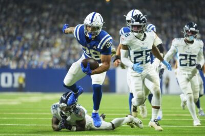 Colts: They played without DEs Samson Ebukam (knee) and Tyquan Lewis (groin) last week, and it’s unclear if either will be ready to go this week and WR/KR Anthony Gould left last week’s game with a knee injury. None of the three practiced Wednesday. Also sitting out were S Nick Cross (shoulder), WR Josh Downs (hip), CB Kenny Moore II (Achilles tendon) and DT Grover Stewart (foot). It’s also unclear whether CB Jaylon Jones (hamstring) will be ready to go this week after opening his 21-day window to return from injured reserve last week.