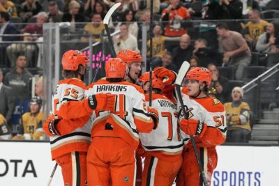 LAS VEGAS (AP) — Jacob Trouba scored at 4:28 of overtime and Anaheim scoring leader Leo Carlsson had his first two-goal game of the season in the red-hot Ducks’ 4-3 victory over the Vegas Golden Knights on Saturday night.