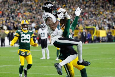 Green Bay’s Edgerrin Cooper knocked the ball away from Hurts at the end of an 11-yard run that would have put the Eagles inside Green Bay’s 15-yard line on Philadelphia’s opening series. Keisean Nixon recovered the fumble and returned it 22 yards.