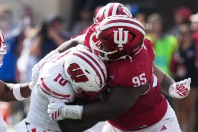 BLOOMINGTON, Ind. (AP) — Wisconsin running back Gideon Ituka was placed on a backboard and carted off the field after taking two big hits on the same play midway through third quarter at No. 2 Indiana on Saturday.