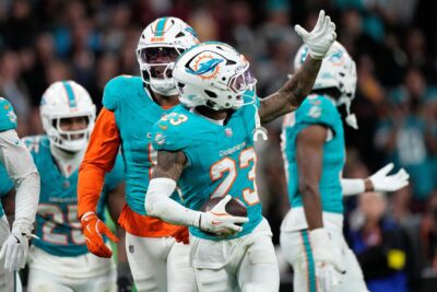 Dolphins: DB JuJu Brents left with an ankle injury. … Achane was injured in the fourth quarter but walked off the field on his own. … S Jordan Colbert was sidelined in the first half with a concussion.