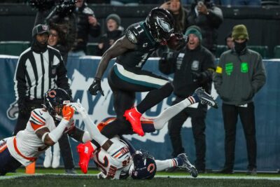 The Eagles finished with 87 rushing yards against the Bears, marking the seventh time this season they have failed to reach the 100-yard mark. … QB Jalen Hurts had gone five straight games without an interception before he was picked off by Bears safety and former teammate Kevin Byard. Hurts finished with 230 yards passing and two touchdowns. … Philadelphia has committed four turnovers in its past two games after losing three fumbles and one interception over its first 10 games. … WR A.J. Brown had a season-high 132 yards receiving on 10 catches with two touchdowns against Chicago, marking his first career game with double-digit receptions, 100 yards and two scores. … CB Quinyon Mitchell is allowing a completion rate of 41.9% as the primary defender in coverage. That is second in the NFL behind Buccaneers CB Jamel Dean at 40.5%. … The Eagles haven’t lost three in a row since Week 13-15 of the 2023 season as part of their late-season collapse. … TE Dallas Goedert has a career-high seven touchdown receptions this season but none over the past four weeks. He has topped 50 yards receiving this season once, finishing with 110 yards in a loss to the Giants in Week 6 … The Chargers held the Raiders to 31 yards rushing, the second time this season the defense has held an opponent under 40 yards on the ground. They allowed 34 yards to the Vikings in Week 8. … Herbert has thrown 11 touchdowns to six interceptions in six true home games this season. He had 11 touchdowns to two interceptions in eight home games in 2024. … RB Kimani Vidal rushed for a career-high 126 yards against the Raiders. It was Vidal’s third career 100-yard game, all of which have come this season. … The Chargers are leading the AFC and rank second in the league in third down efficiency, converting on 48.3% of their opportunities. … S Tony Jefferson had an interception against the Raiders after being a healthy scratch for the previous three games. … The Chargers are 2-2 on Mondays at SoFi Stadium, having lost their past two games. … Chargers coach Jim Harbaugh has the eighth-best winning rate in NFL history with a minimum of 60 regular-season games at 68.3% (63-29-1) Eagles head coach Nick Sirianni is sixth at 70% (56-24).