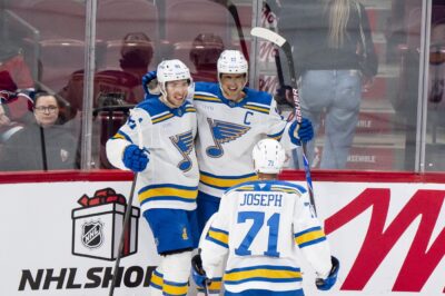 Blues: Capitalized on their opportunities when the Canadiens left Holloway and Buchnevich alone in front during an otherwise tight-checking game.