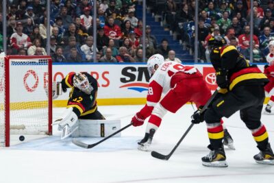 In a fast-moving first period, the Canucks outshot the Red Wings 11-6. But the visitors opened the scoring when van Riemsdyk tapped a loose puck at the net front past Lankinen for his fourth goal in as many games.