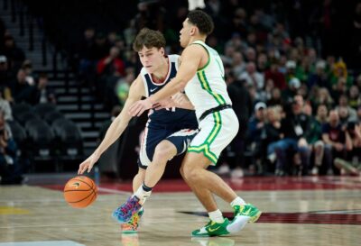 Oregon played Gonzaga tough in a back-and-forth first half, led by 16 points from Bittle, and it was tied in the final seconds before Grant-Foster’s buzzer-beating 3-pointer put the Bulldogs up 42-39.