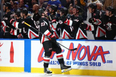 The Sabres grabbed a 2-1 lead with goals 1:33 apart in the second period. McLeod’s seventh of the season at 1:39 tied it and Krebs’ second of the year at 3:12 gave them the lead. Samuelsson’s sixth of the season made it 3-1 at 7:54.