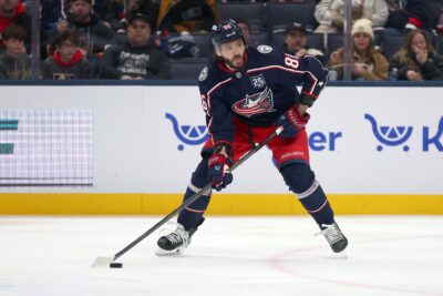 Kirill Marchenko scored his second goal of the night with 3:19 left in the game, just over a minute after Ivan Provorov knotted the score at 2-2. Cole Sillinger added an empty-netter, and Denton Mateychuk and Sean Monahan both had two assists. Jet Greaves stopped 24 shots.
