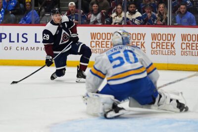 Nichushkin made it 1-0 a minute in, and MacKinnon scored his first of the game at 3:13. Nichushkin got his second of the night 13 seconds later, and MacKinnon’s slap shot 1:13 after that capped the early scoring.