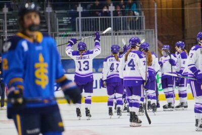 “I think (in the) second period, they took it to us a little bit. We had a lot of turnovers, unfortunately, and they were really going after us,” Frost head coach Ken Klee said. “But we had Nicole. She was outstanding. She kept us in there, made huge saves at key times. And to me, that’s really the tale of the tape.”