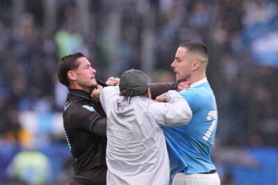 Lazio defender Adam Marušić and Napoli counterpart Pasquale Mazzocchi were sent off after getting into a scuffle, that descended into a brawl with Conte trying to separate the two sides.