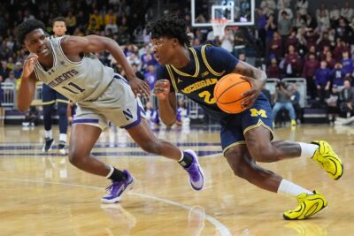 Michigan then got back in the game by scoring 16 of the next 18 points. Johnson’s alley-oop dunk trimmed Northwestern’s advantage to 60-58 with 9:38 to go, delighting a sizeable contingent of Michigan fans at Welsh-Ryan Arena.