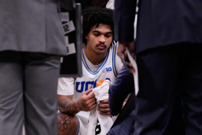 Clark lost the tooth late in the Bruins’ first-round win on Friday night when he dived for a loose ball and took an elbow to the face from a UCF defender. The tooth went flying and members of the UCLA staff scurried around to try and find it.