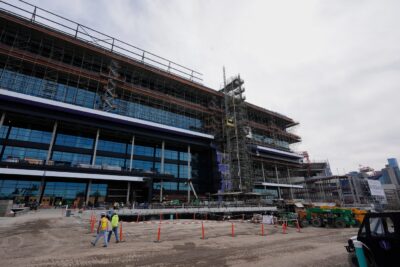 The locker room has metal walls in place now with space for 68 fixed lockers along with showers, a trainers’ area and equipment storage. Builders designed the room with an extra beam to avoid a column in the middle of that locker room to keep the space open.
