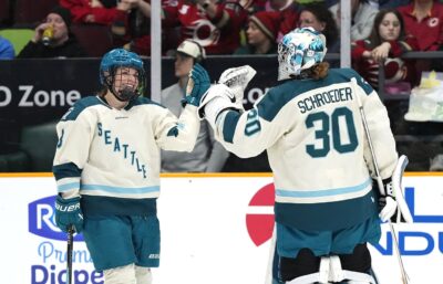 Seattle nearly tied it when Gabrielle Davis’ backhand rang off one post and the other. The Torrent did eventually even things at 13:09 when Jada Habisch, with her first in the PWHL, redirected a Megan Carter shot.